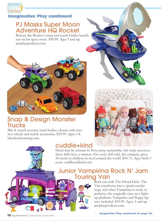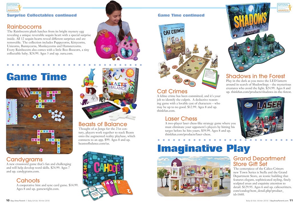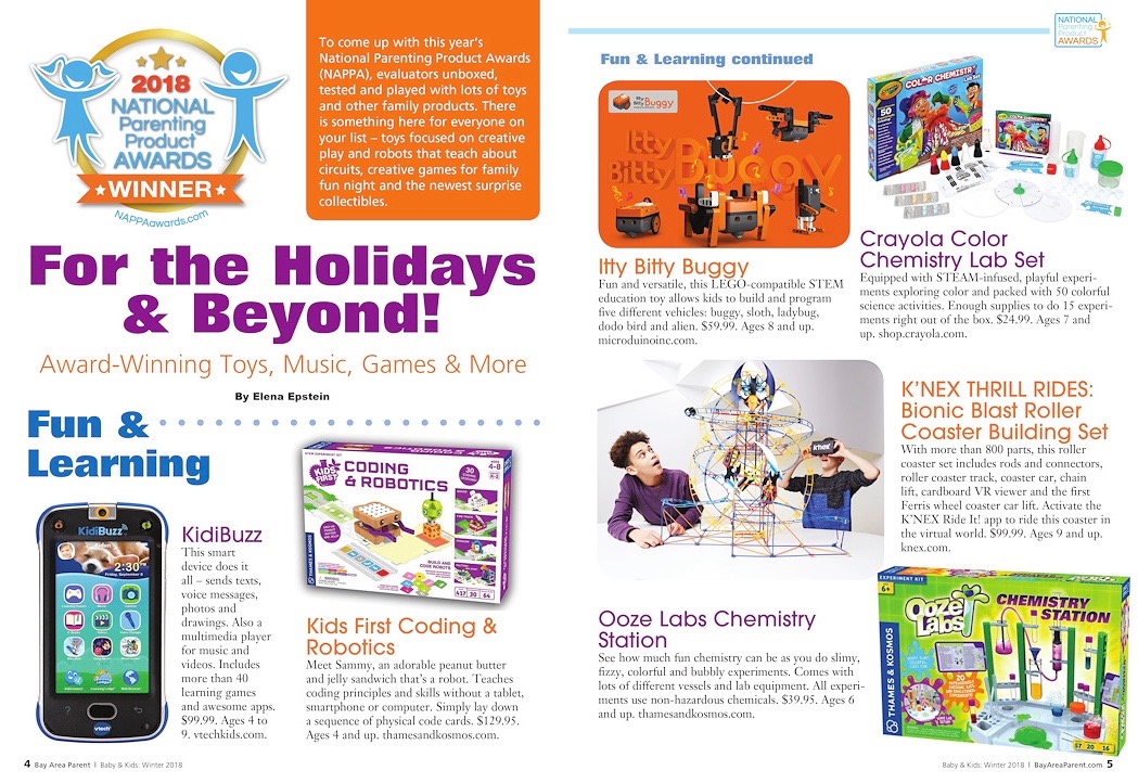 Check out our NAPPA winning toys, games, music and baby products published in BayArea Parent’s holiday edition. See full guide HERE