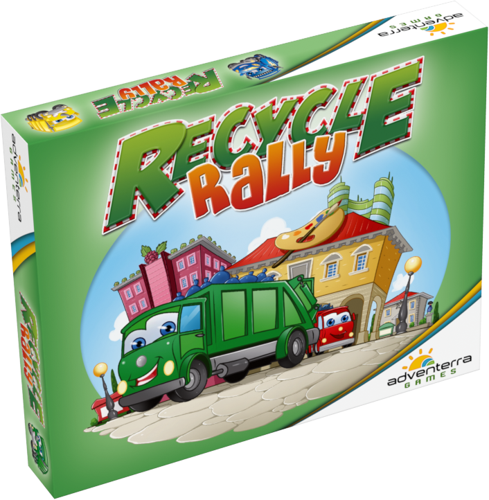 Recycle Rally: If too many recyclables are left behind, useful stuff is incinerated and the whole town is in trouble. The rules also feature an advanced game mode, recommended for ages 10 and up. Recycle Rally is perfect for 3 to 5 players. Game time is about 45 minutes. Ages 7+