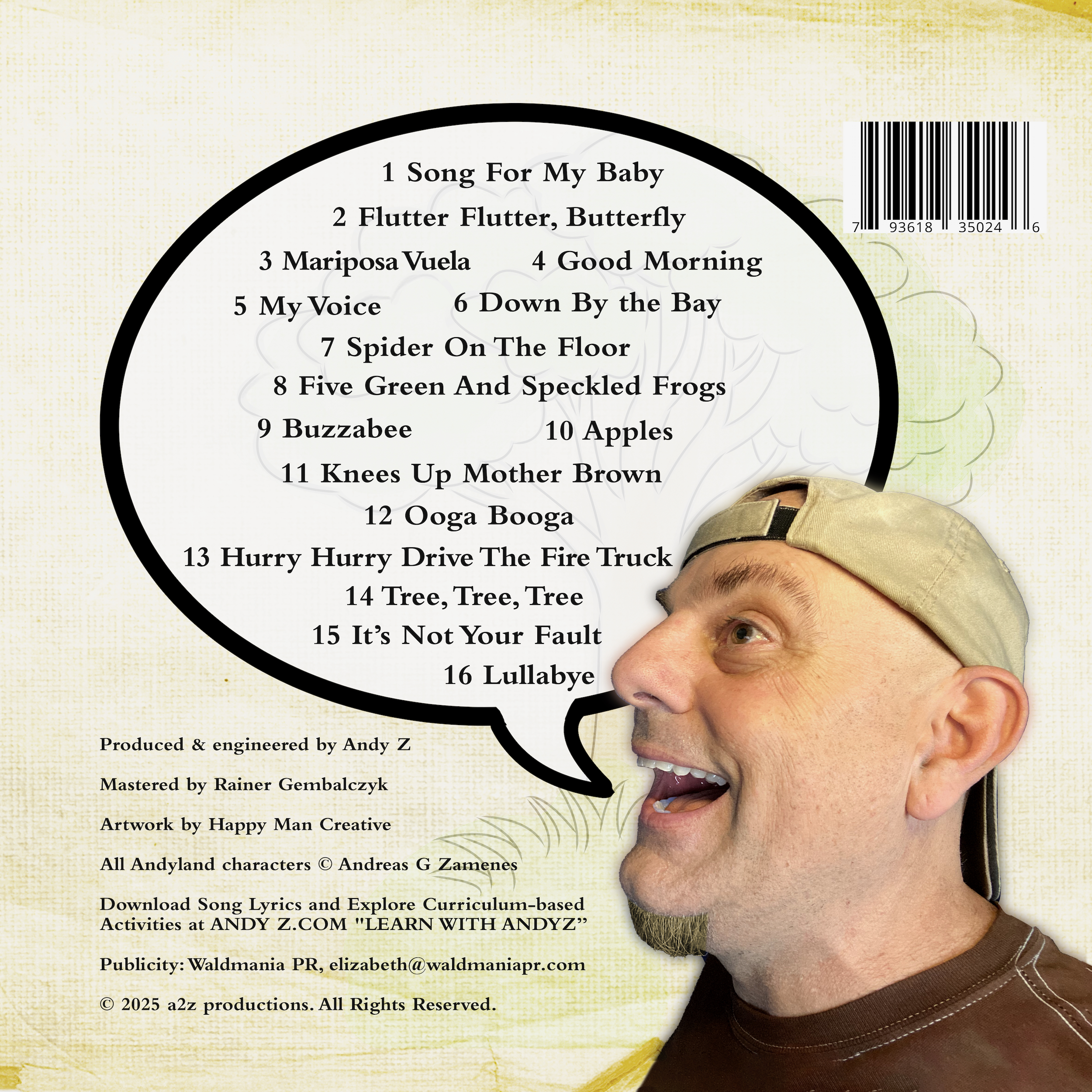 “On his first full-length album since 2018, the award-winning children musician Andy Z delivers an excellent collection of songs that covers many moods and occasions. It begins with the wonderful “Song For My Baby,” a jazzy tune expressing parents’ love of their child, and ends – quite appropriately – with a quiet song for sleep time, “Lullabye.” In between there is a lot of music that will engage youngsters in a variety of ways and interests. Some numbers that are full of goofy fun, like “Down By The Bay,” “Spider On The Floor,” and the counting tune “Five Green and Speckled Frogs.” “Apples” is a humorous ode to the fruit that takes a zany twist (that I won’t spoil). “Good Morning,” “Ooga Booga,” and the title track are all songs that inspire interactivity. “Buzzabee” and “Knees Up Mother Brown,” similarly, are lively dance-along tunes, while “Hurry Hurry Drive The Fire Truck” will get kids moving too. “Flutter Flutter, Butterfly” and its Spanish version, “Mariposa Vuela” offer lilting salutes to beautiful butterflies, and the Mr. Rogers’ song “Tree, Tree, Tree” stands as a heartfelt tribute to trees. “It’s Not Your Fault” is a standout track that delivers its “don’t carry blame on your shoulders” message through a moving folk-rock melody that will connect to listeners of all ages”