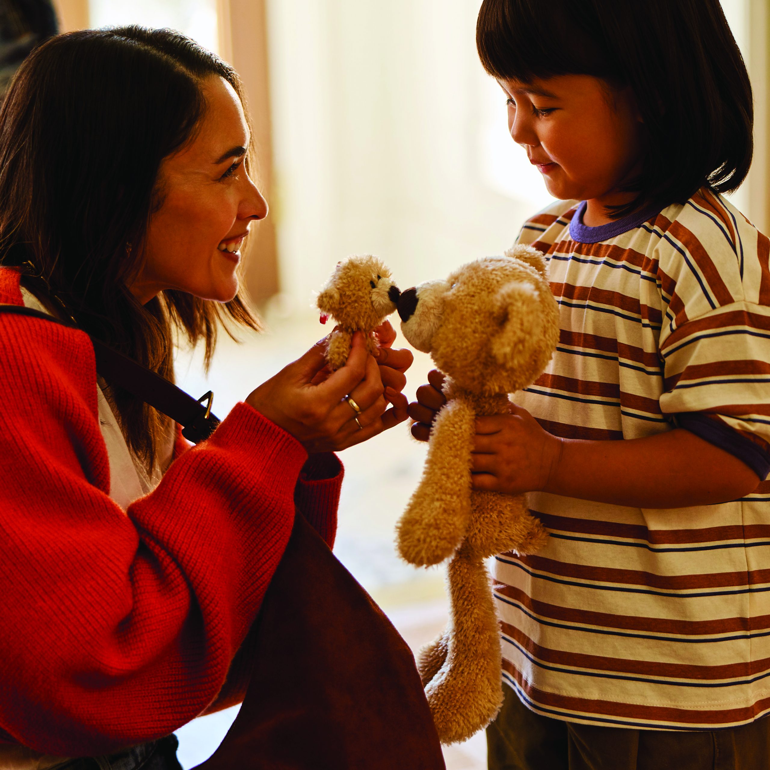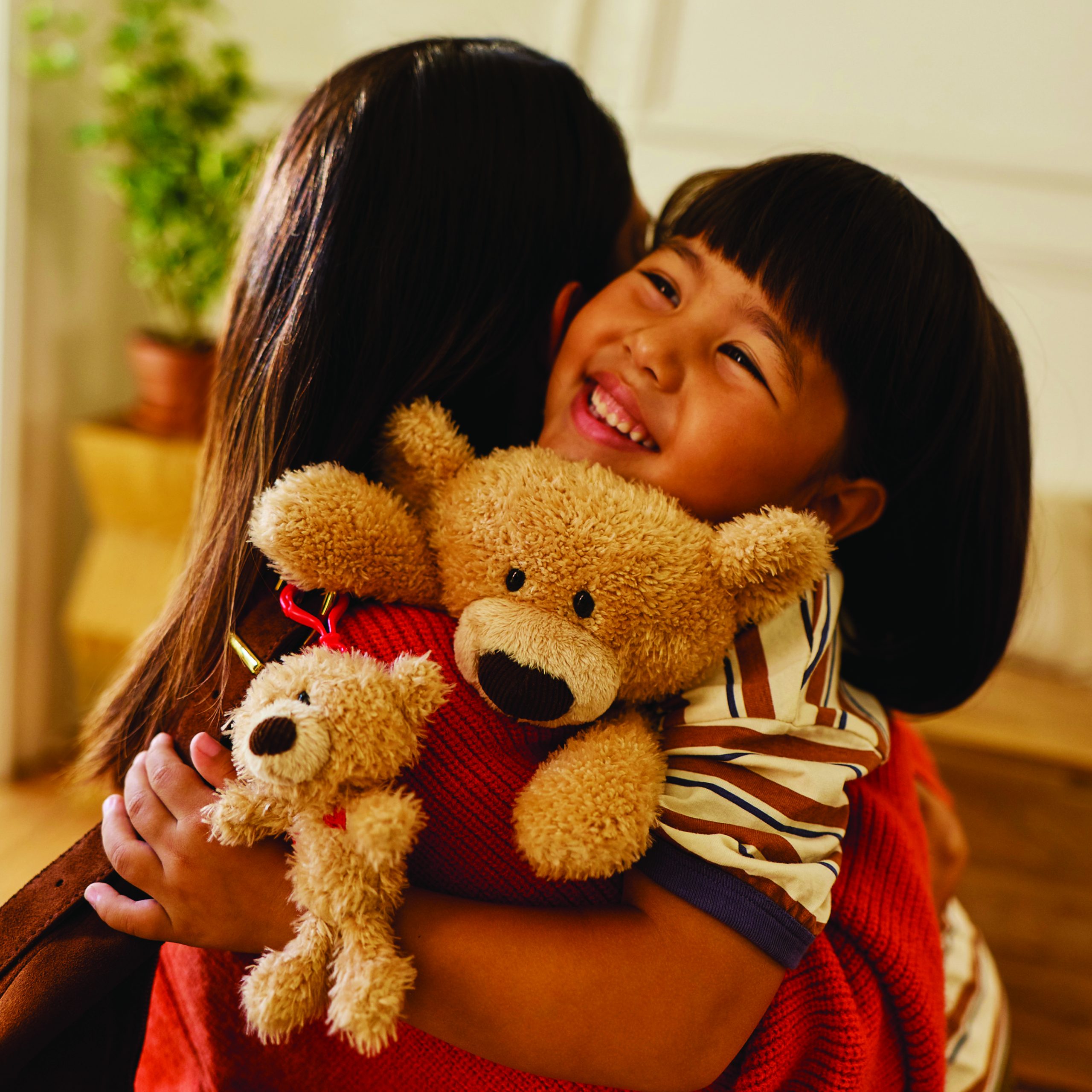 This special set features Toothpick, available in both full-size and mini keychain forms – one for your child and one for you or your caregiver to take anywhere on the go. Inside Toothpick’s soft, huggable body, there’s a small voice recorder that can contain up to three 20-second voice messages. With your child’s hug, Toothpick delivers your message of comfort and love reminding them that you’re always there even when apart.