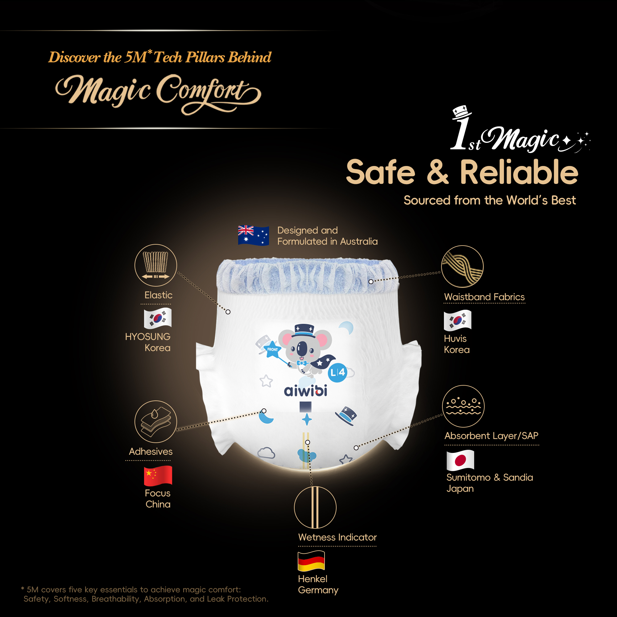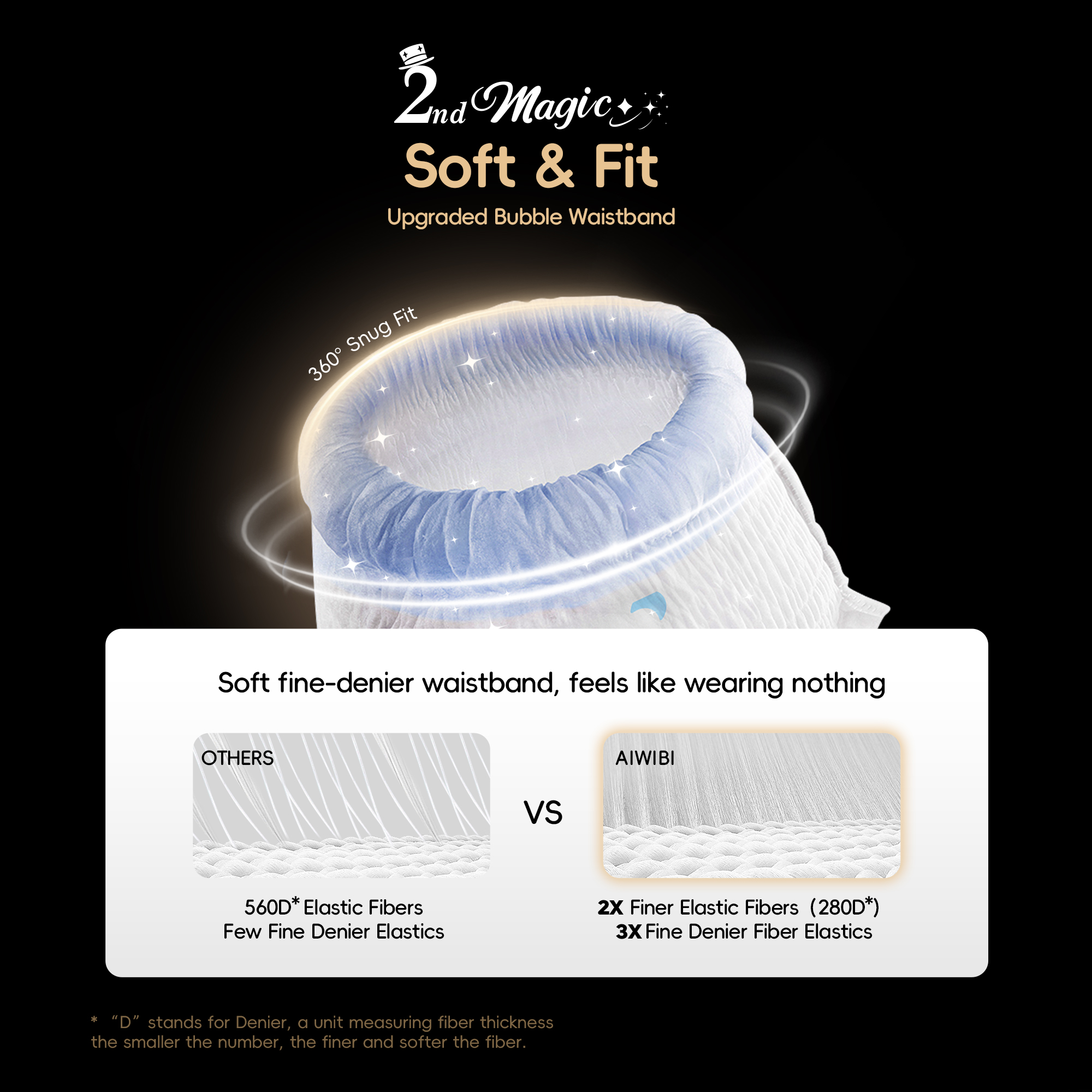 Driven by consumer demand for unparalleled softness, the Magic Comfort Baby Pants have a Zero-Feel Waistband™, revolutionizing ultra-fine deniel material with exceptional elasticity and gentler fit. This series represents Aiwibi’s highest-performance configuration yet, with breakthroughs in ultra-softness, rapid absorbency, and skin-friendly design, ensuring the best comfort for your little one. From advanced airflow technology to leak-proof protection, every detail is tailored to deliver excellence, making it the ideal choice for discerning parents who seek nothing but the best.