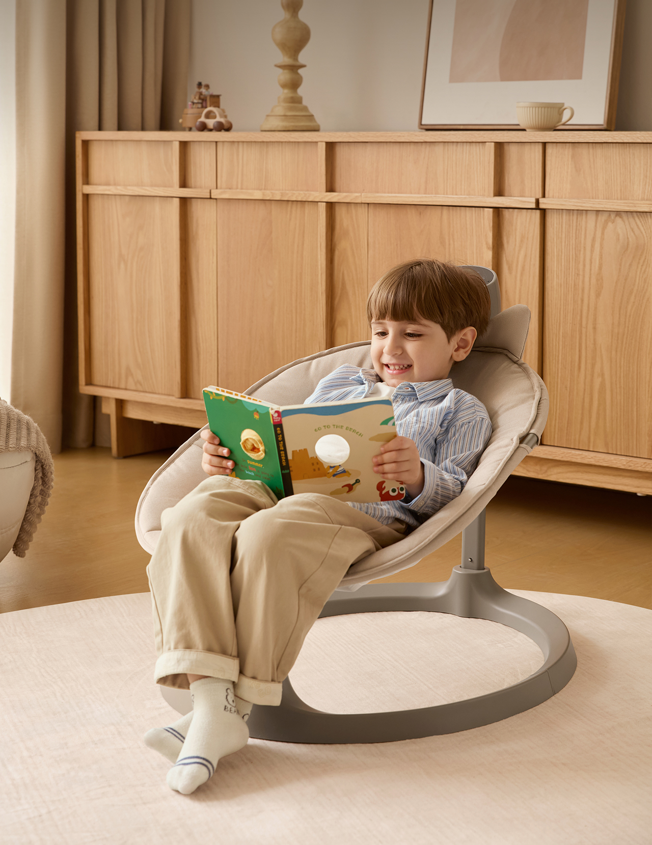“The swing feels sturdy and well-made, with a stable base and a comfortable seat for baby. The harness is easy to use and adjust, which is important for both safety and convenience. The fabric feels soft and supportive, and the overall construction gives confidence that it will hold up well with regular use. The controls are simple and intuitive, allowing you to easily adjust speed, rocking pattern and music settings without any confusion.”