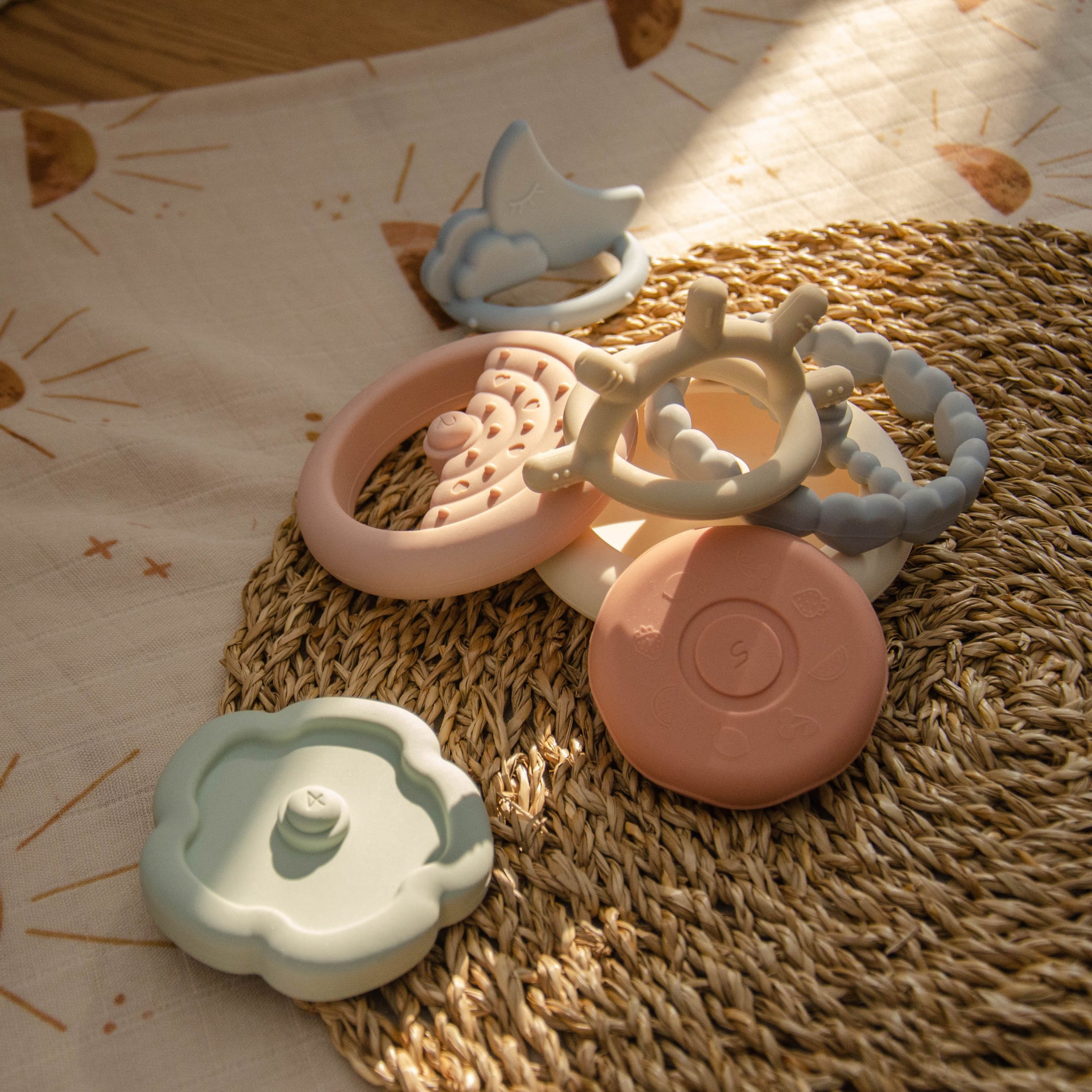 “Each ring is a pretty muted color with a unique shape or texture. My son immediately tasted them all!”