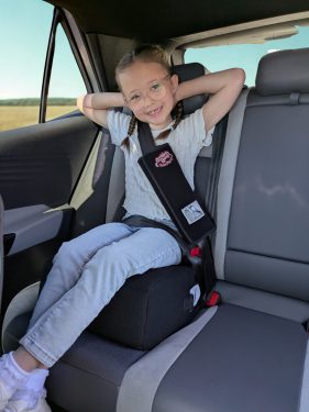 “It is portable, lightweight and easy to bring on the go. It easily deflates and folds flat so that it doesn’t take up too much space – making it great for going to my mom’s house or when we go on vacation. It’s also great to have if we are in a pinch and need to throw a booster seat into his babysitter’s car.”