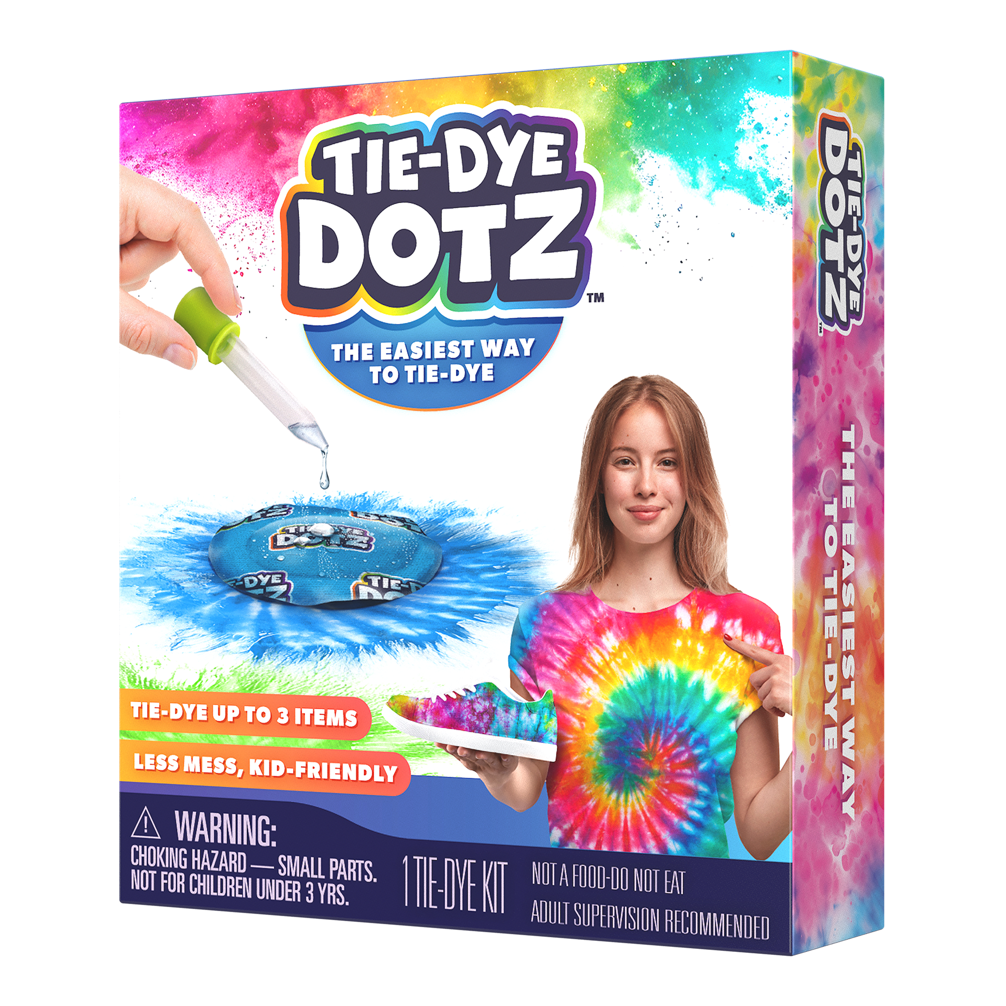 This is the easiest way to tie-dye! Tie-Dye Dotz simplifies the traditional tie-dye process, allowing you to create vibrant garments and accessories with nearly no mess at all! Simply place your Tie-Dye Dotz on the item you wish to dye and add water. It’s that easy!