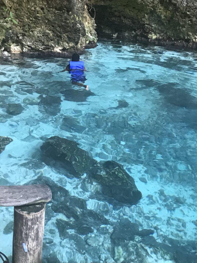 While he hadn’t felt comfortable enough to dance in front of strangers, his intrigue was piqued when we stood at the top of the cliff and looked down. The Hoyo Azul was like nothing we had seen before: the clearest, bluest water that, one writer wrote, feels like cream when you swim in it.
